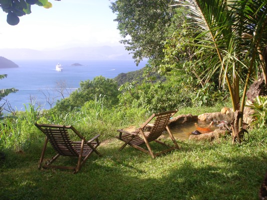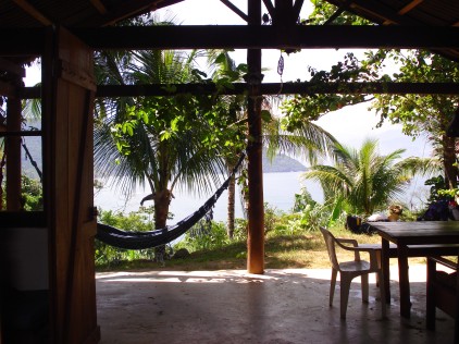 Wenn Sie in Abraao, dem Hauptort der Insel bleiben wollen, aber abseits vom touristischen Zentrum, kommen Sie in unsere Jungle Lodge. Wir vermieten die ganze Lodge an Grupppen oder einzelne Zimmer. Die Jungle Lodge liegt inmitten des Atlantischen Regenwaldes. Im großen tropische Garten können Sie grillen, in einer Hängematte unter Kokospalmen entspannen und die Nacht am Lagerfeuer genießen. Wir bieten eine gute Struktur mit komplett eingerichteter Küche, Wohnzimmer mit TV, DVD und Sound, Internet, Bettwäsche , Handtücher.